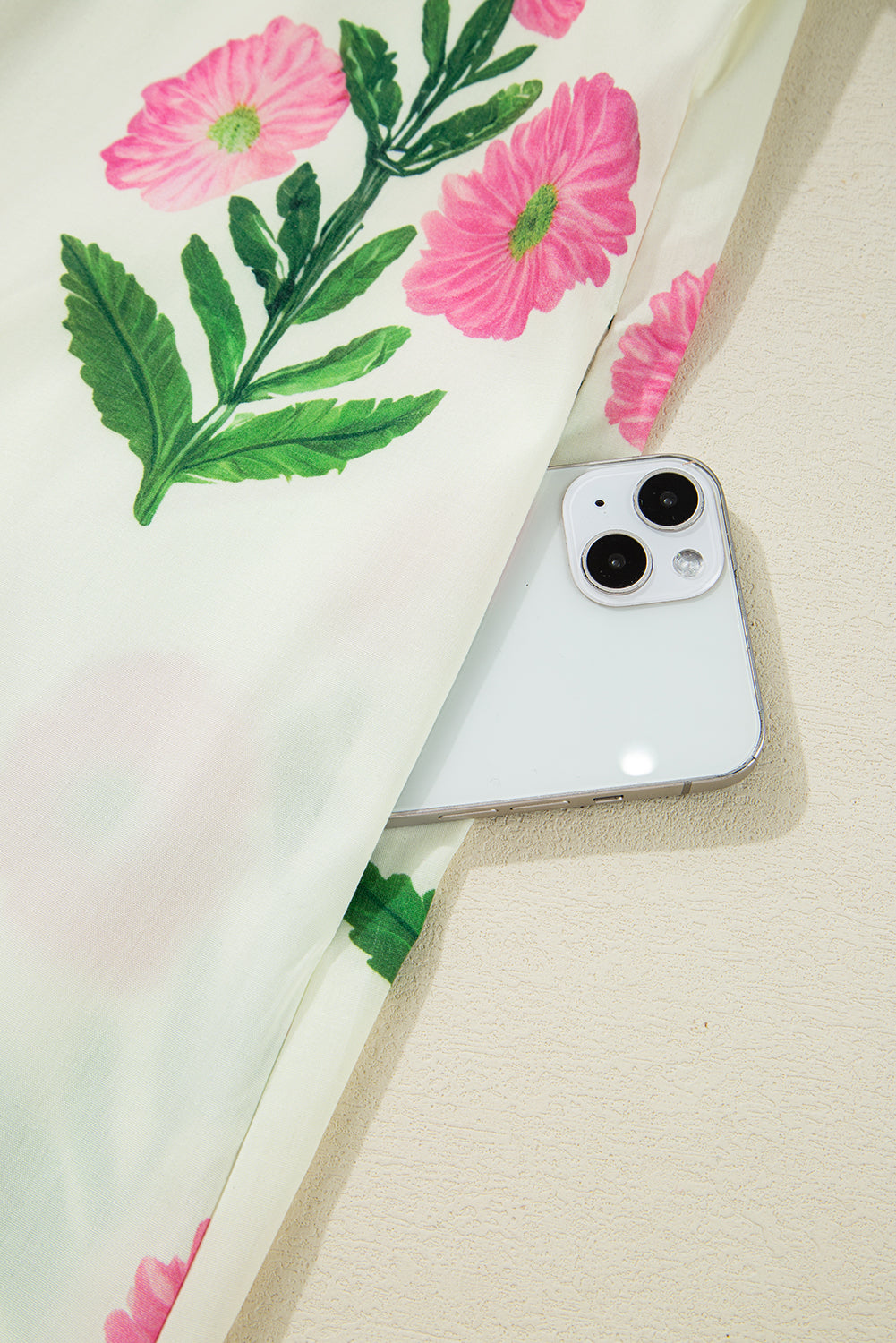 Apricot Floral Short Sleeve Split Neck Loose Mini Dress