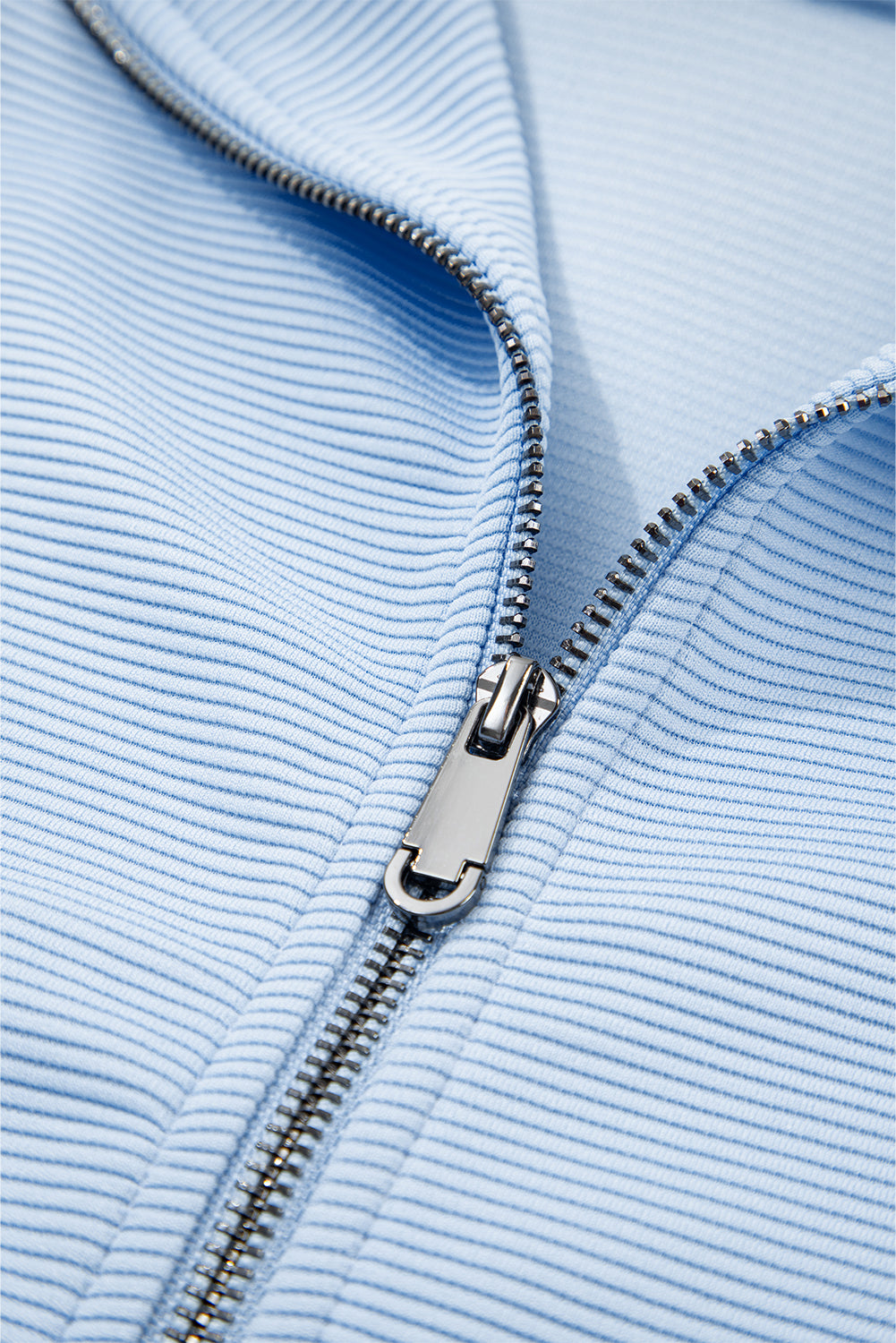 Beau Blue Textured Ruffled Sleeve Zipped Top and Wide Leg Pants Set