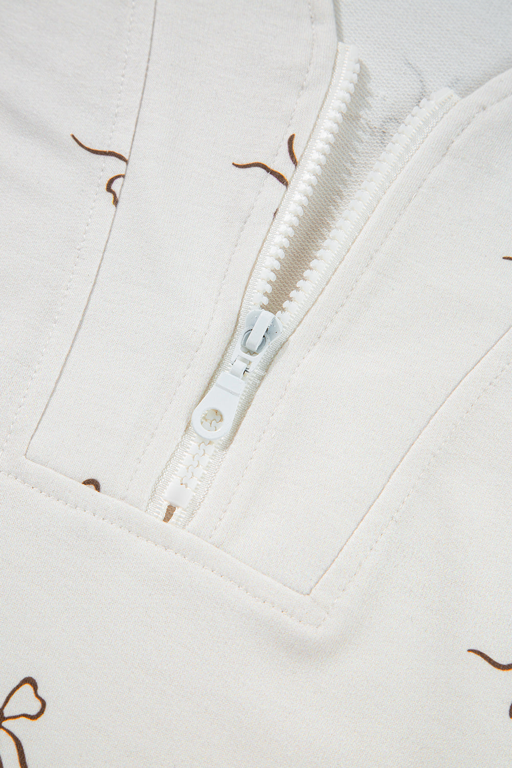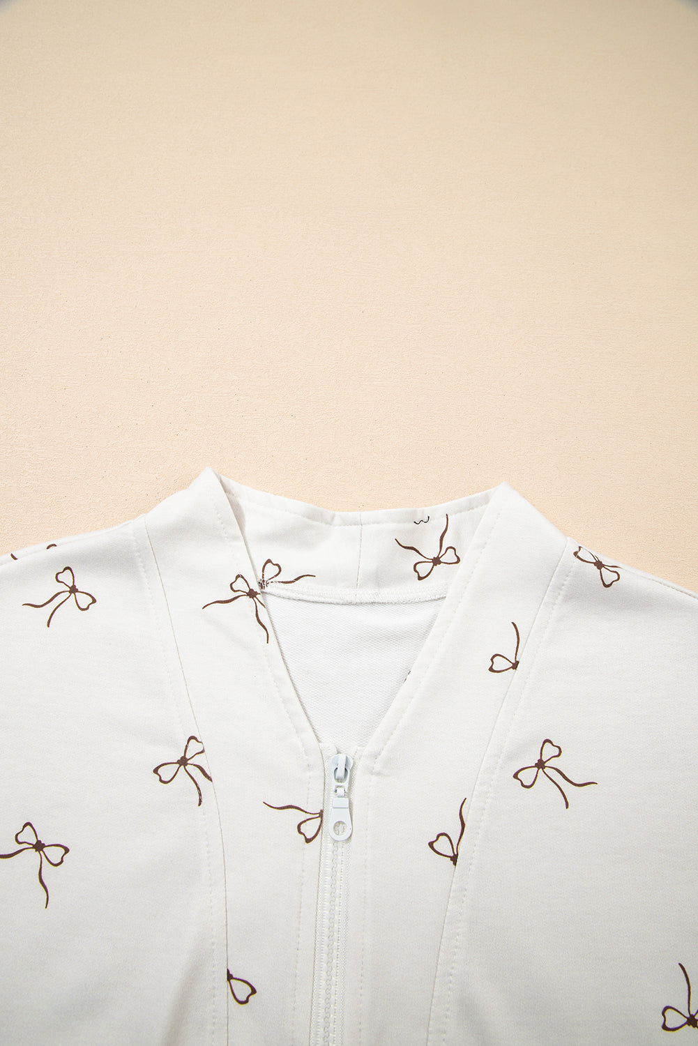 Beige Bow Print Half Zip Tank and Shorts 2pcs Set