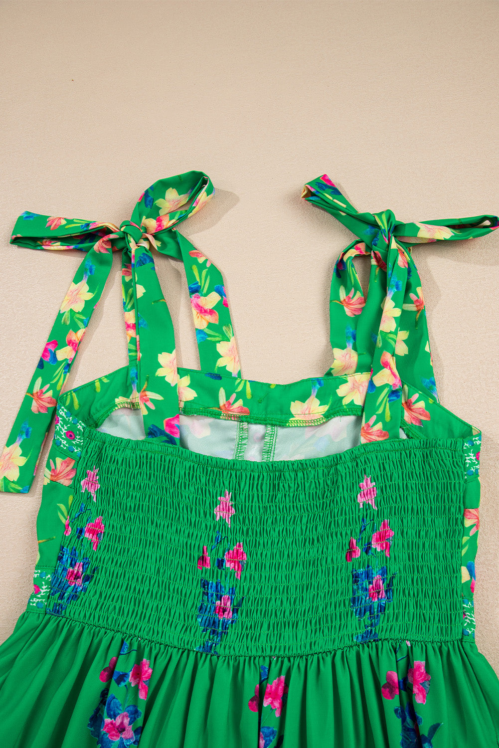Green Floral Print Contrast Trim Knotted Straps Midi Dress