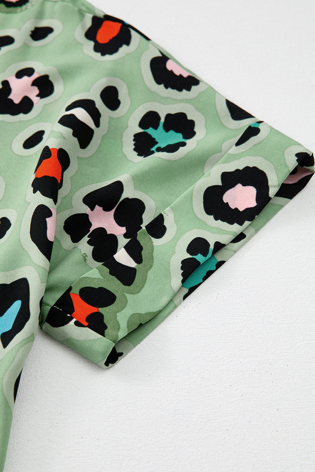 Green Leopard Print Short Sleeve Shirt and Wide Leg Pants Set