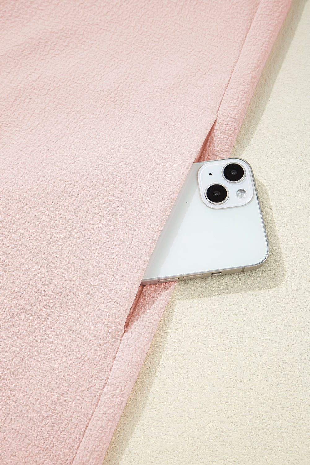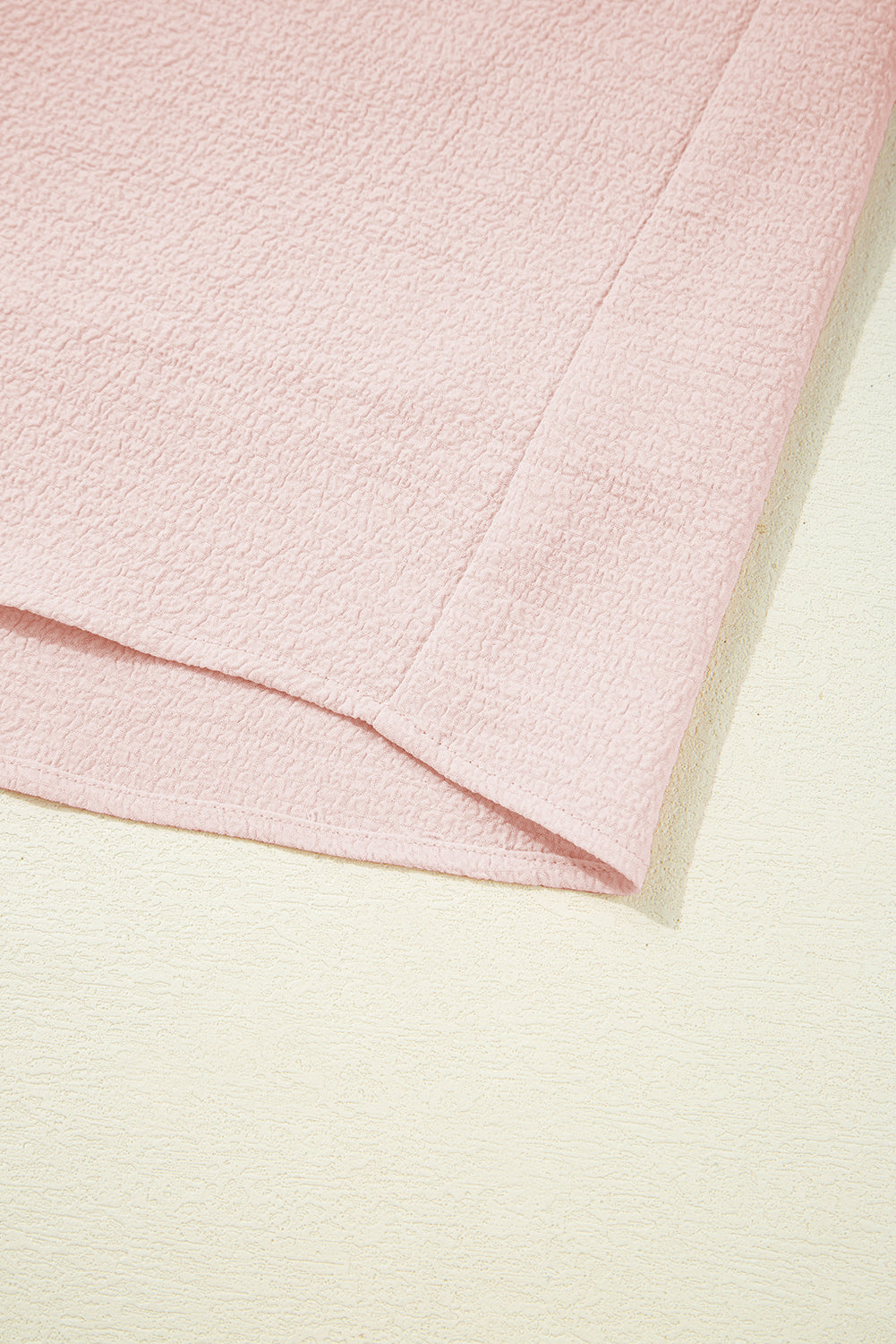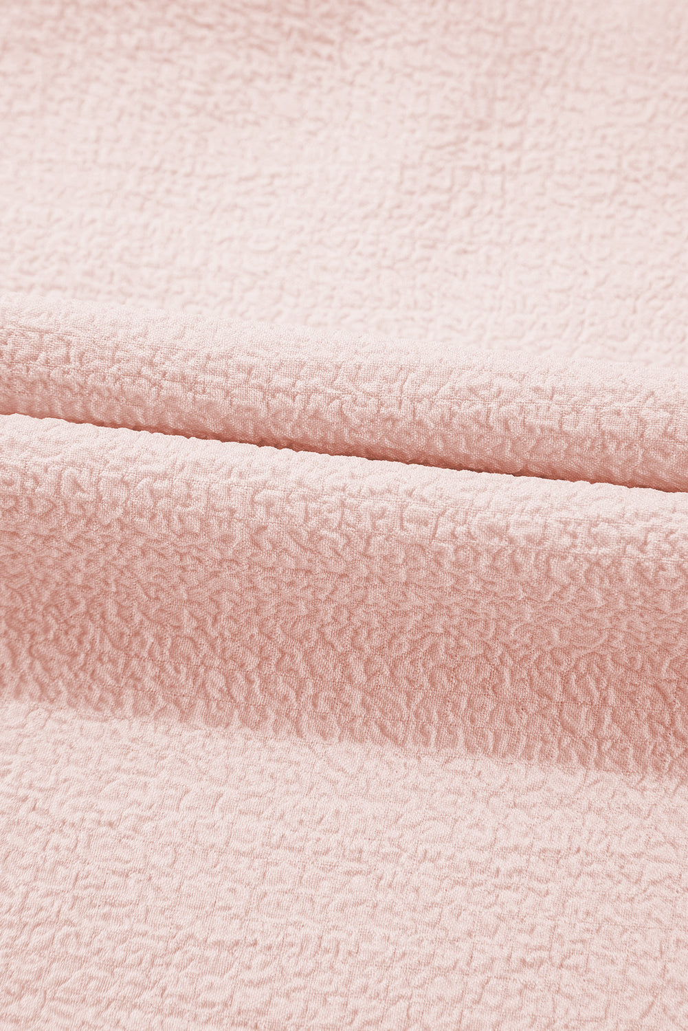 Light Pink Textured Flutter Sleeve Square Neck Bow Back Dress
