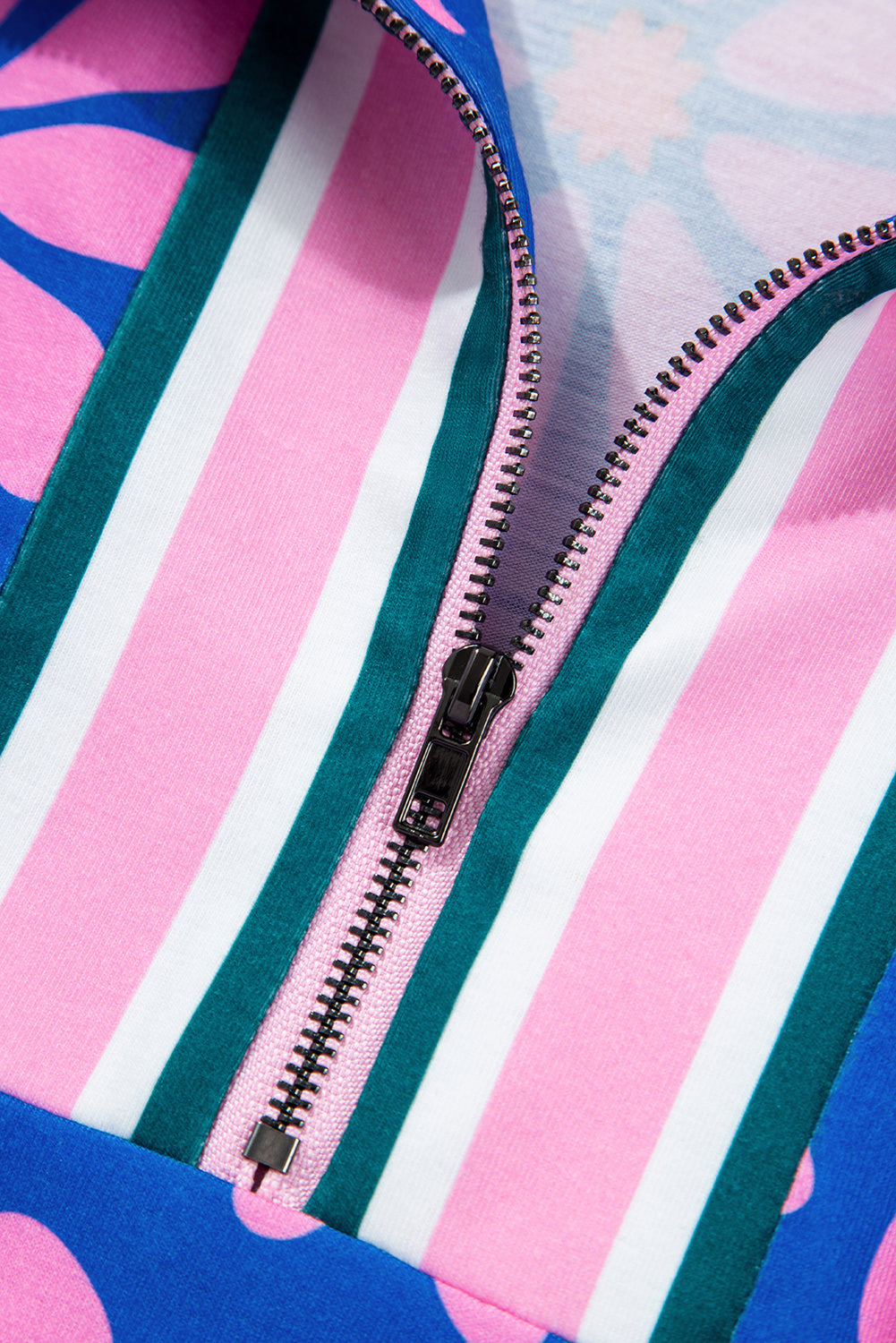 Purple Floral Striped Quarter Zip Cap Sleeve Drawstring Waist Dress
