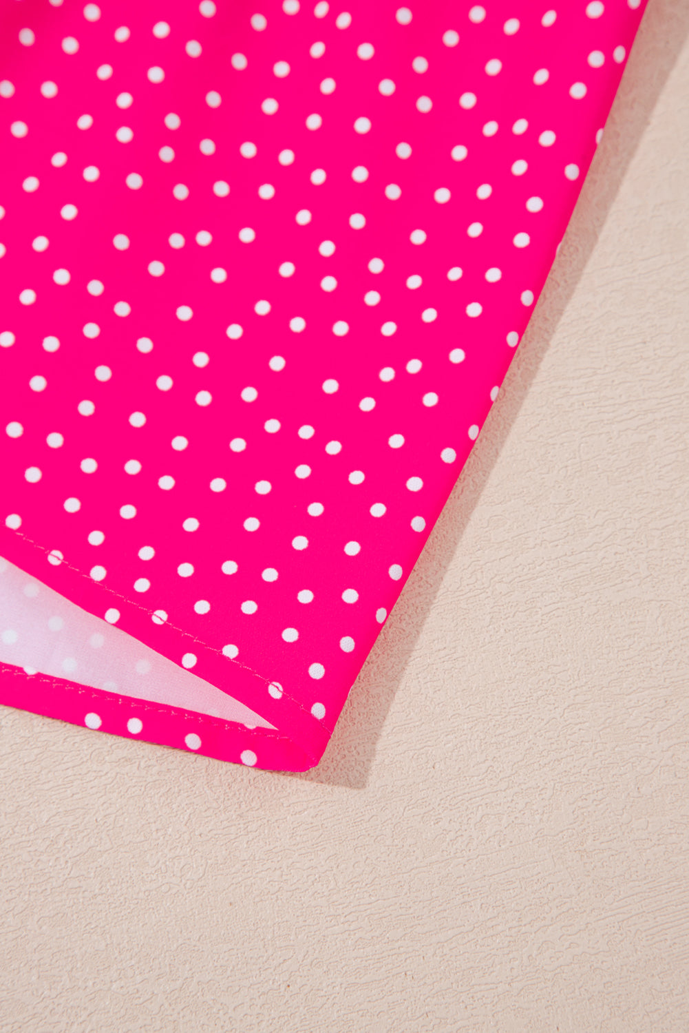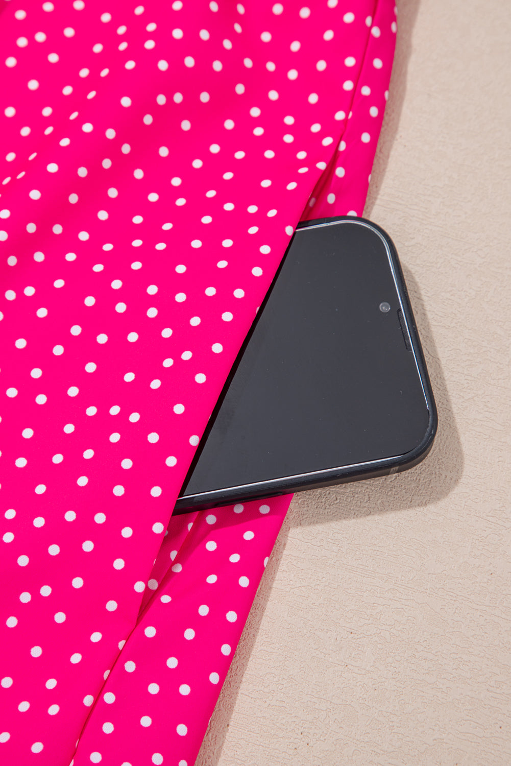 Rose Polka Dot Print Ruffled Smocked High Waist Plus Midi Dress
