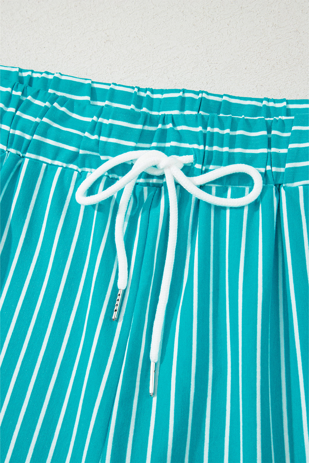 Sky Blue Stripe V Neck Tee and Casual Short Set